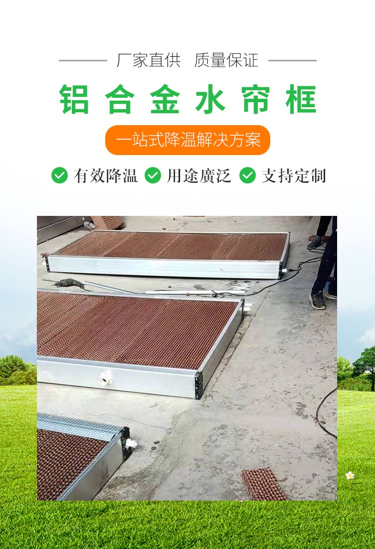 公司致力于發展提高節能環保領域及通風降溫系統工程,適用各類工廠車間,關殖場,網吧降溫需求。我司水簾片,濕簾墻質地堅硬,抗壓力高,吸水性好,不易變形,不縮水。